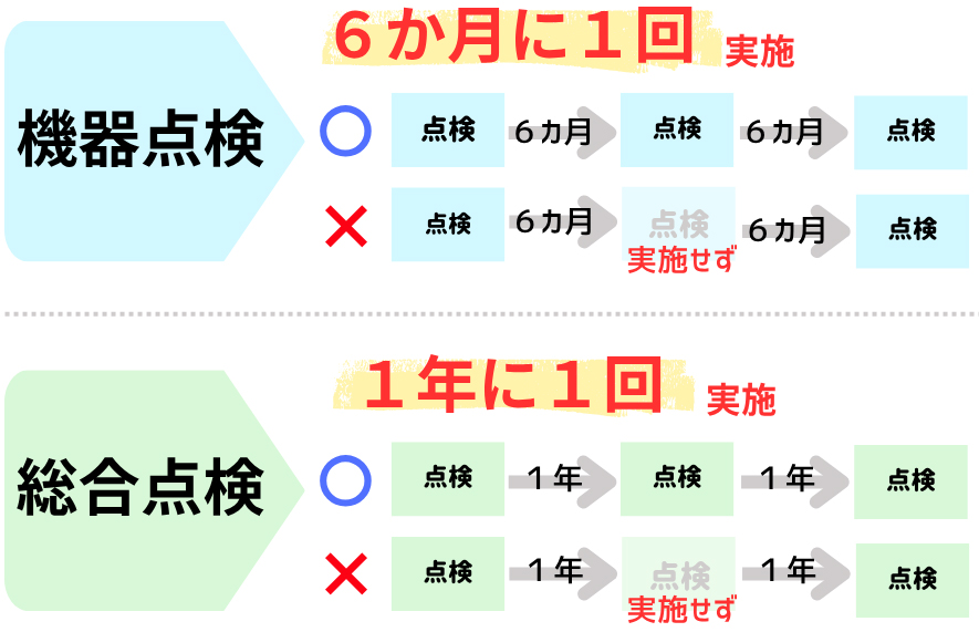 点検の種類と期間(消防法施行規則第31条の6・平成16年消防庁告示第9号)